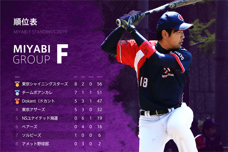そんな中で新規参加の 東京シャイニングスターズ の活躍が目立っていた。リーグ屈指の打撃陣と、こちらもリーグ屈指のエース・鈴木(6)を擁し他チームを圧倒。参加初年度でリーグ優勝を果たした。